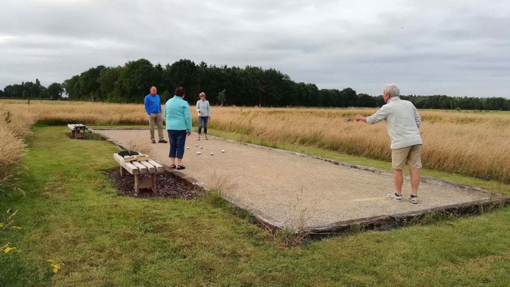 Een officiële Jeu de Boules baan met een mooi uitzicht over de natuurvijver en landerijen. Ben je vergeten om jouw eigen Jeu de Boules set mee te nemen? Geen probleem! Een aantal van deze sets liggen klaar bij de receptie.